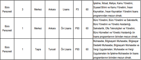 Duyurulan ilana göre 2024 yılı Kamu Personel Seçme Sınavı (KPSS) (B) grubu puan sıralaması esas alınmak suretiyle 16 (on altı) sözleşmeli personel pozisyonuna yerleştirme yapılacaktır. Kadrolar ise şu şekilde duyurulmuştur;